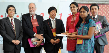 The winners of the Madras Medical College, Chennai team receiving the Fujio Cup and cash prize along with the certificates from the Consul General of Japan Mr. Masanori Nakano.