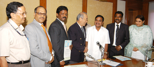 L>R Dr.Samuel JK Abraham (NCRM), H.E. Mr. Hyosuke Yasui,The consul general of Japan at Mumbai, Hon'ble Shri. R.R. Patil, The Deputy Chief Minister of Maharashtra, & Dr. S. Natarajan (Aditya Jyot) |