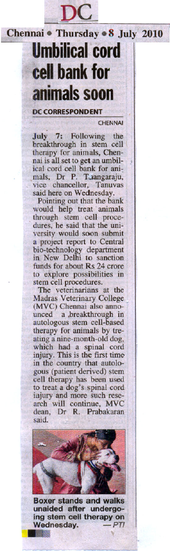 NCRM and TANUVAS jointly start Stem Cell work in Veterinary Spinal Cord Injuries. Rambo walks the Headlines