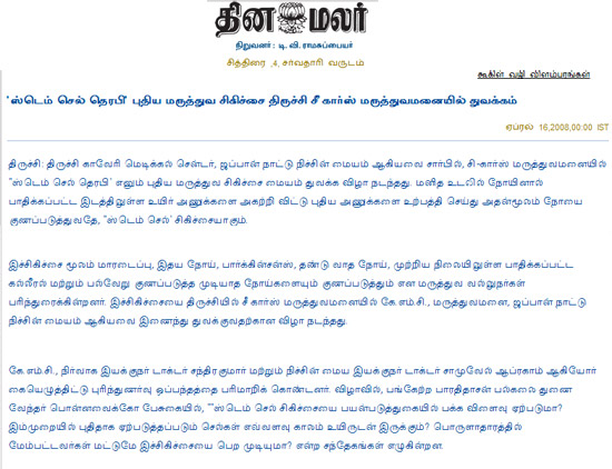 STEM CELL RESEARCH COLLABORATION WITH KAVERY MEDICAL CENTRE |