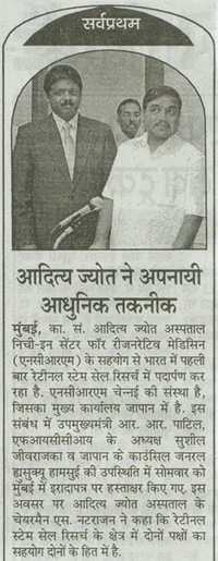 Nichi-In Centre for Regenerative Medicine and Aditya Jyot Eye Hospital, Mumbai signed a research agreement for Retinal stem cell research for the first time in India in Mantralaya, in the presence of Honble Deputy Chief Minister of Maharashtra Shri. R.R. Patil. - Courtesy Nav Bharath, 07th February 2006 issue. | ||