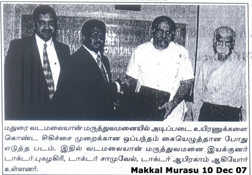 STEM CELL SERVICES TO BE MADE AVAILABLE AT VADAMALAYAN HOSPITAL, MADURAI |