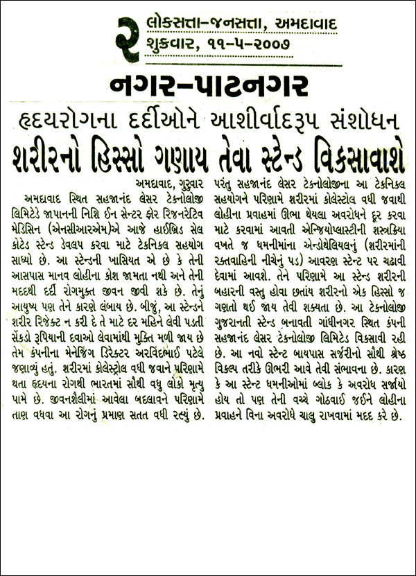 NCRM TO DEVELOP HYBRID CARDIAC STENT WITH CELL COATING TECHNOLOGY
