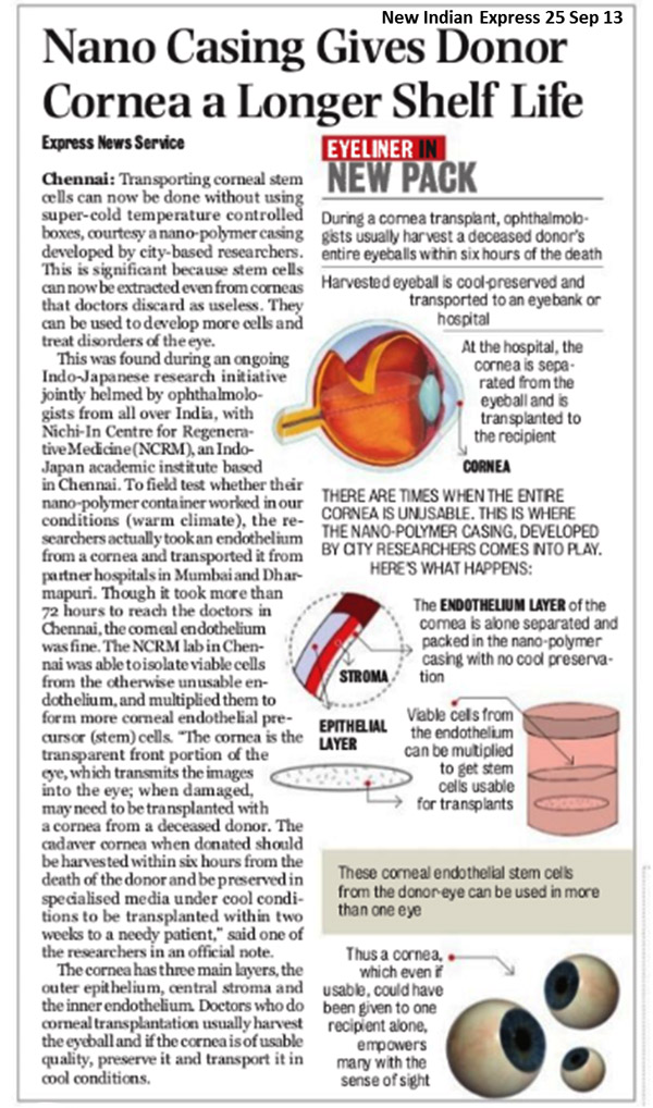 Nanopolymer technology helps transportation of eye stem cells without cool preservation - 'An Eye for eyes' mission moves forward |