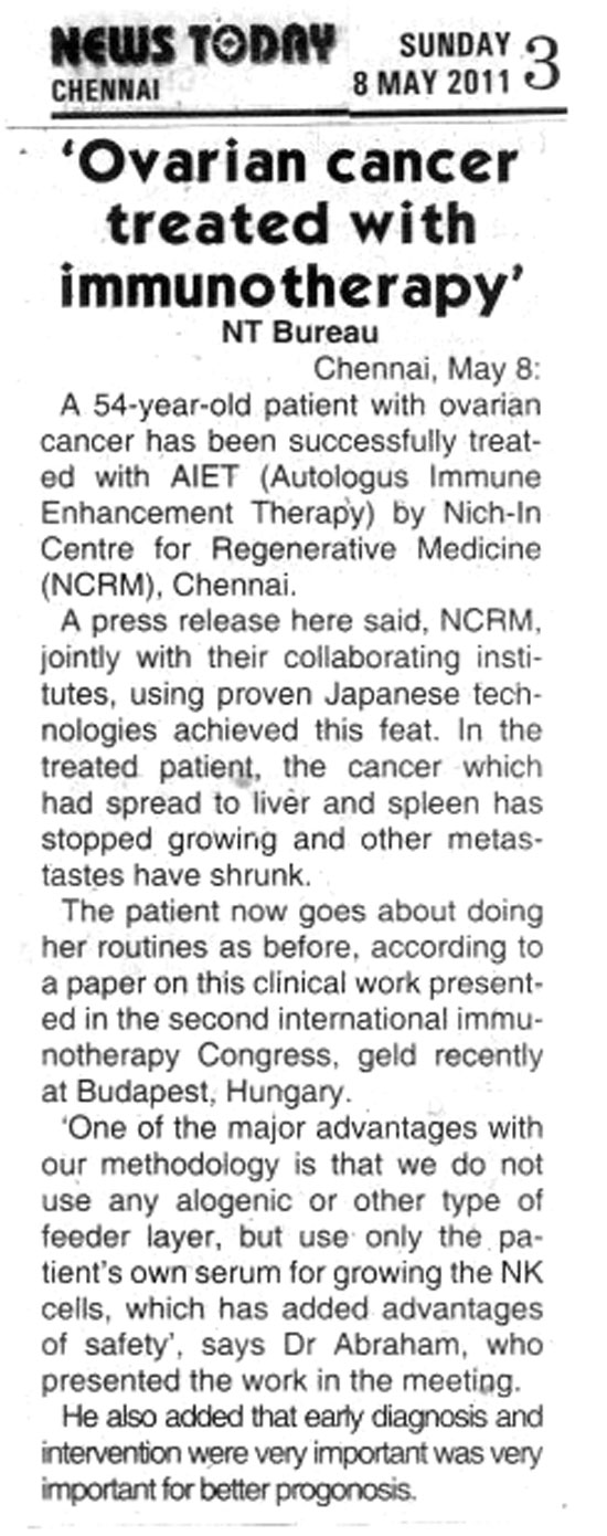 Ovarian cancer treated with AIET by NCRM Team
