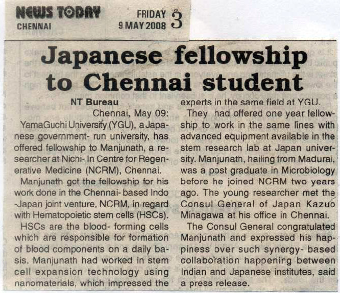 STEM CELL SEE RESEARCH OFFICER OF NCRM THROUGH TO JAPAN