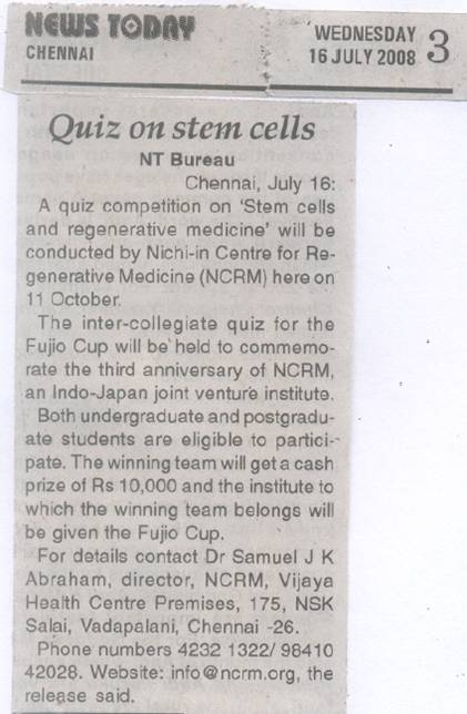 THIRD FUJIO CUP QUIZ ON STEM CELLS & REGENERATIVE MEDICINE