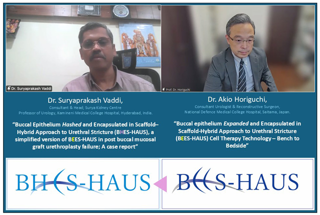 NCRM traced its translational journey from corneal limbal regenerative work since 2002 to the urology breakthrough, the BEES-HAUS (Buccal epithelium Expanded and Encapsulated in Scaffold – Hybrid Approach to Urethral Stricture) which is now a clinical application in Japan under the Act on the Safety of Regenerative Medicine, as explained by Dr. Akio Horiguchi of National Defence Medical College Hospital, Saitama, Japan in his plenary lecture. Building on this success, Dr. Suryaprakash Vaddi, Consultant & Head, Surya Kidney Centre and Professor of Urology, Kamineni Medical College Hospital, Hyderabad, India explained the simplified procedure, BHES-HAUS (Buccal Epithelium Hashed and Encapsulated in Scaffold – Hybrid Approach) which is currently in clinical trial, presenting the encouraging preliminary outcome in a patient with post buccal mucosal graft (BMG) plasty failure who developed urethral stricture, in the plenary session.