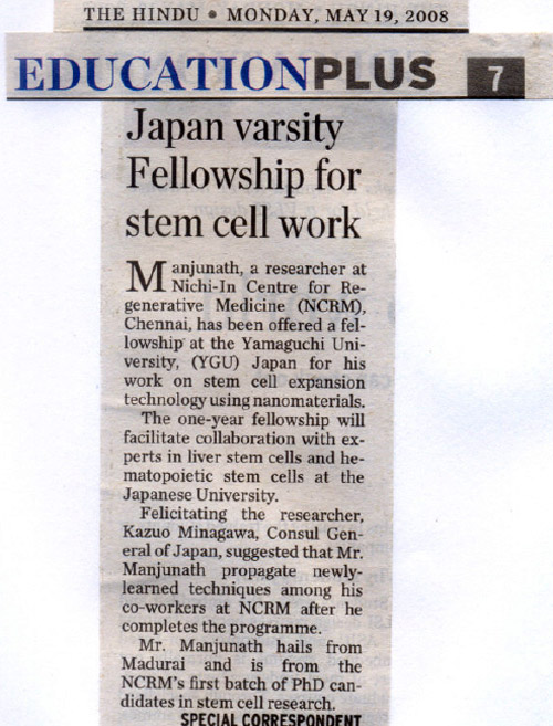 STEM CELL SEE RESEARCH OFFICER OF NCRM THROUGH TO JAPAN |