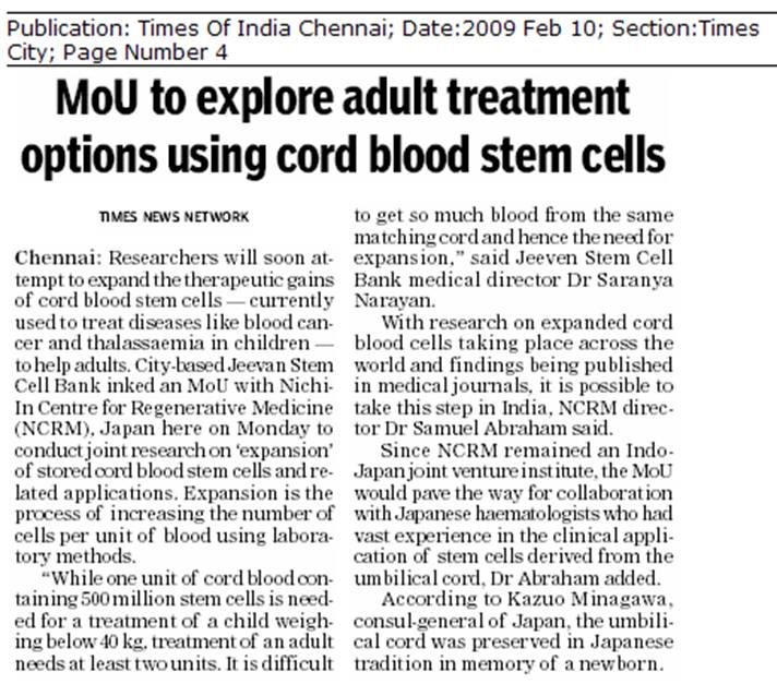 NCRM SIGNS MoU WITH JEEVAN STEM CELL BANK |