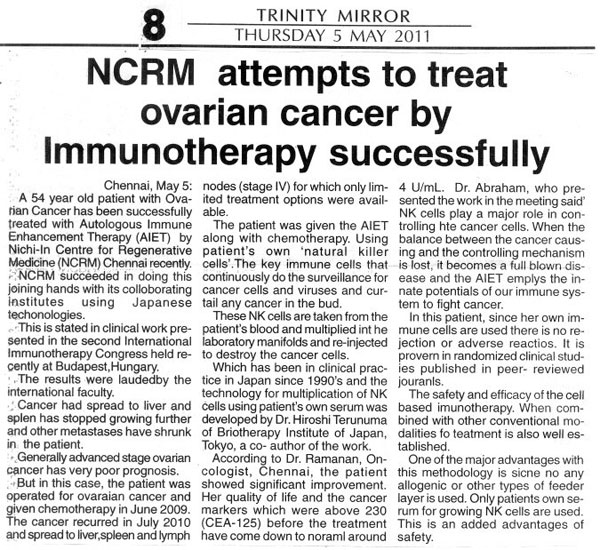 Ovarian cancer treated with AIET by NCRM Team |