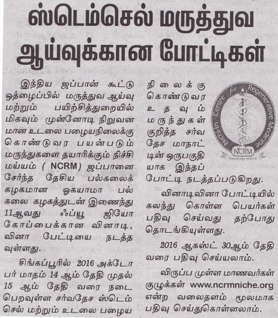 XI edition of NCRM NICHE 2016- In academic partnership with Okayama University, Japan &TPRM; An initiative by Univ. of Toronto